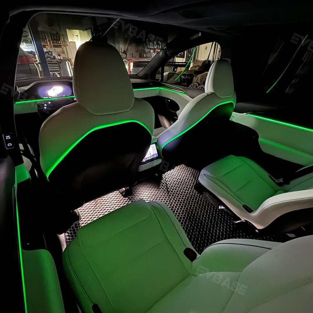 Safety and Visibility: EVBASE ambient lighting for Model X can also serve functional purposes,provide subtle illumination to help occupants locate controls and objects within the cabin, enhancing safety and visibility during nighttime driving.