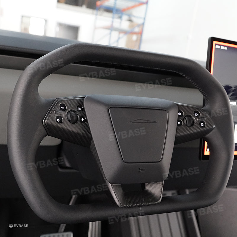 【Luxurius look】Upgrade the appearance of your Cybertruck steering wheel with EVBASE Real Carbon Fiber Steering Wheel Trims. Once installed, it fits perfectly it appears as if factory installed.