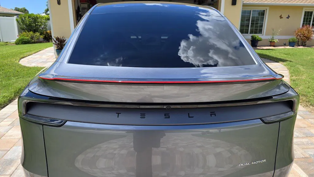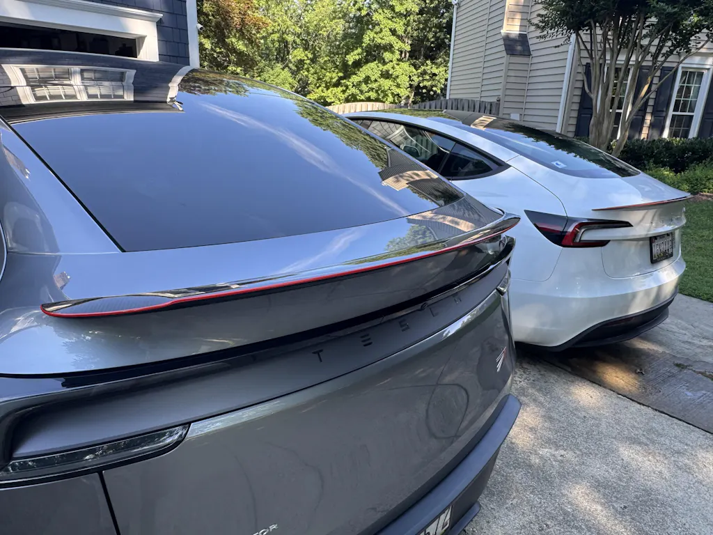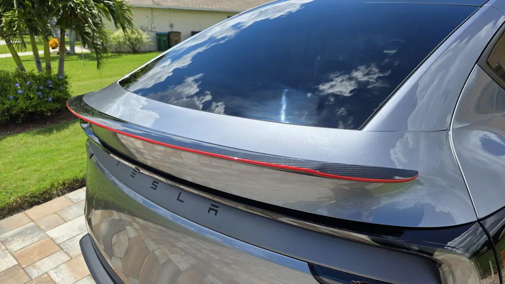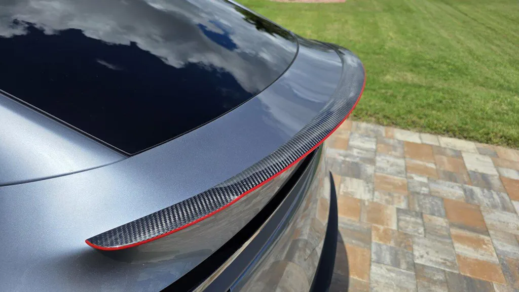 EVBASE carbon fiber rear spoiler wing is the best one exterior upgrade if you're looking for that upgraded performance look. It's not too subtle, yet not overly aggressive. It's just the right amount of sport for a clean modern performance sculpted aerodynamic look.