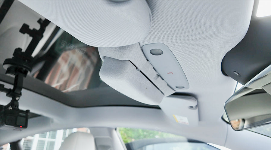 【Original Car Style】Made of premium, eco-friendly, odorless suede leather material, the sunglasses holding mount blends into the Model 3 Highland interior.