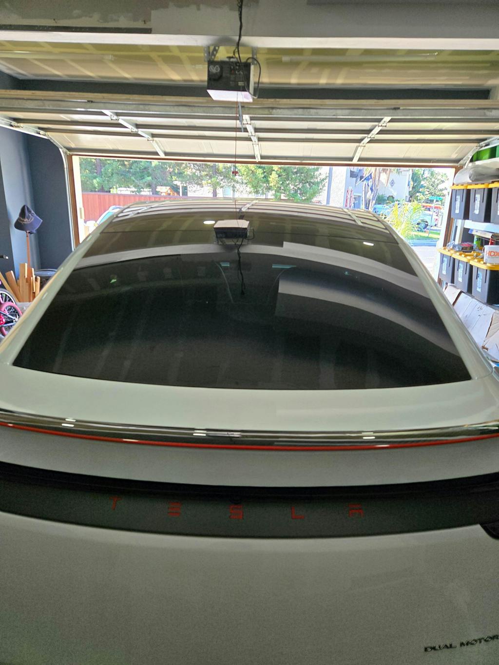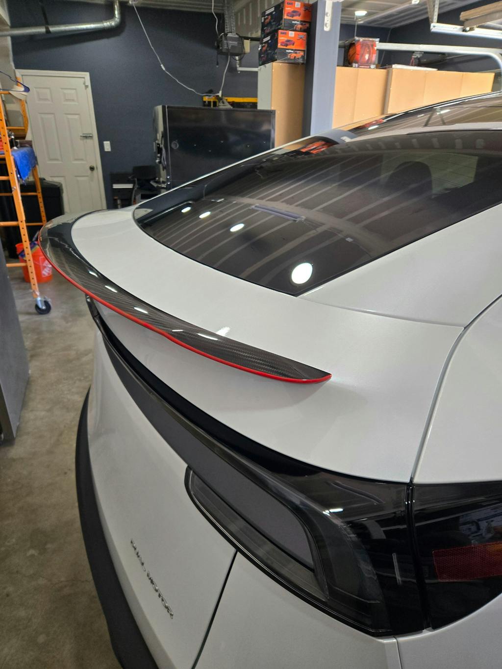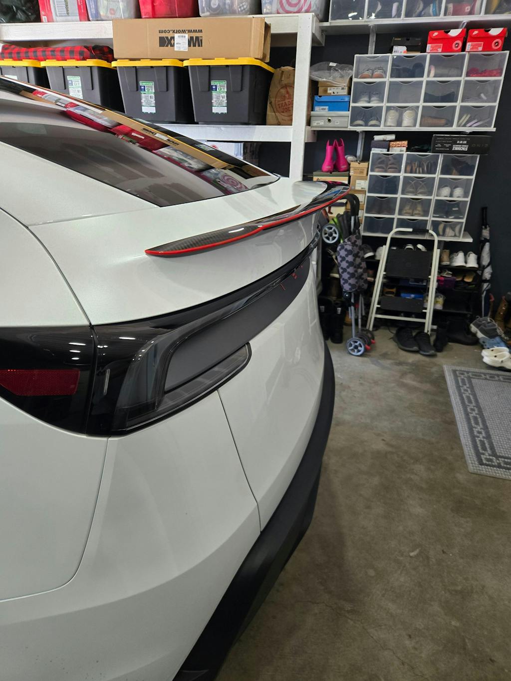 The black spoiler seems regular? Customize a red spoiler to make your Tesla unique