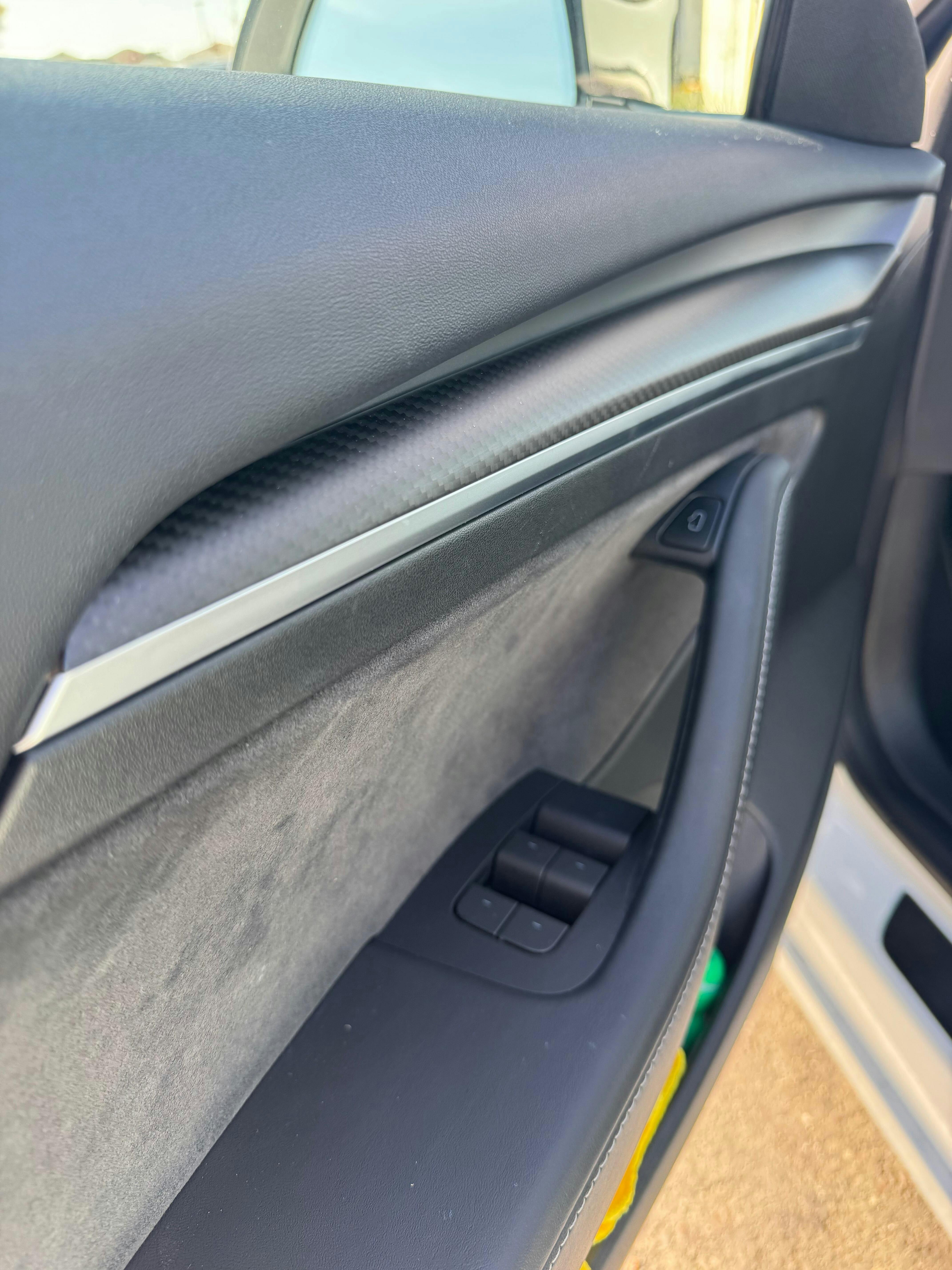 - Compatibility: EVbase Tesla front door trim cover fits 2018-2023 Model 3 and 2020-2023 Model Y perfectly. High-quality carbon fiber, easier to install and very durable compared to other brands. It does not require cutting or dismantling the original interior parts, and the precise cut covers the dashboard perfectly.