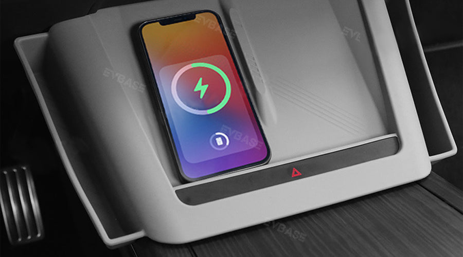 EVBASE Model S/X Wireless Charging Mat With Storage Box Center Console Organizer Silicone Side Tray for Tesla