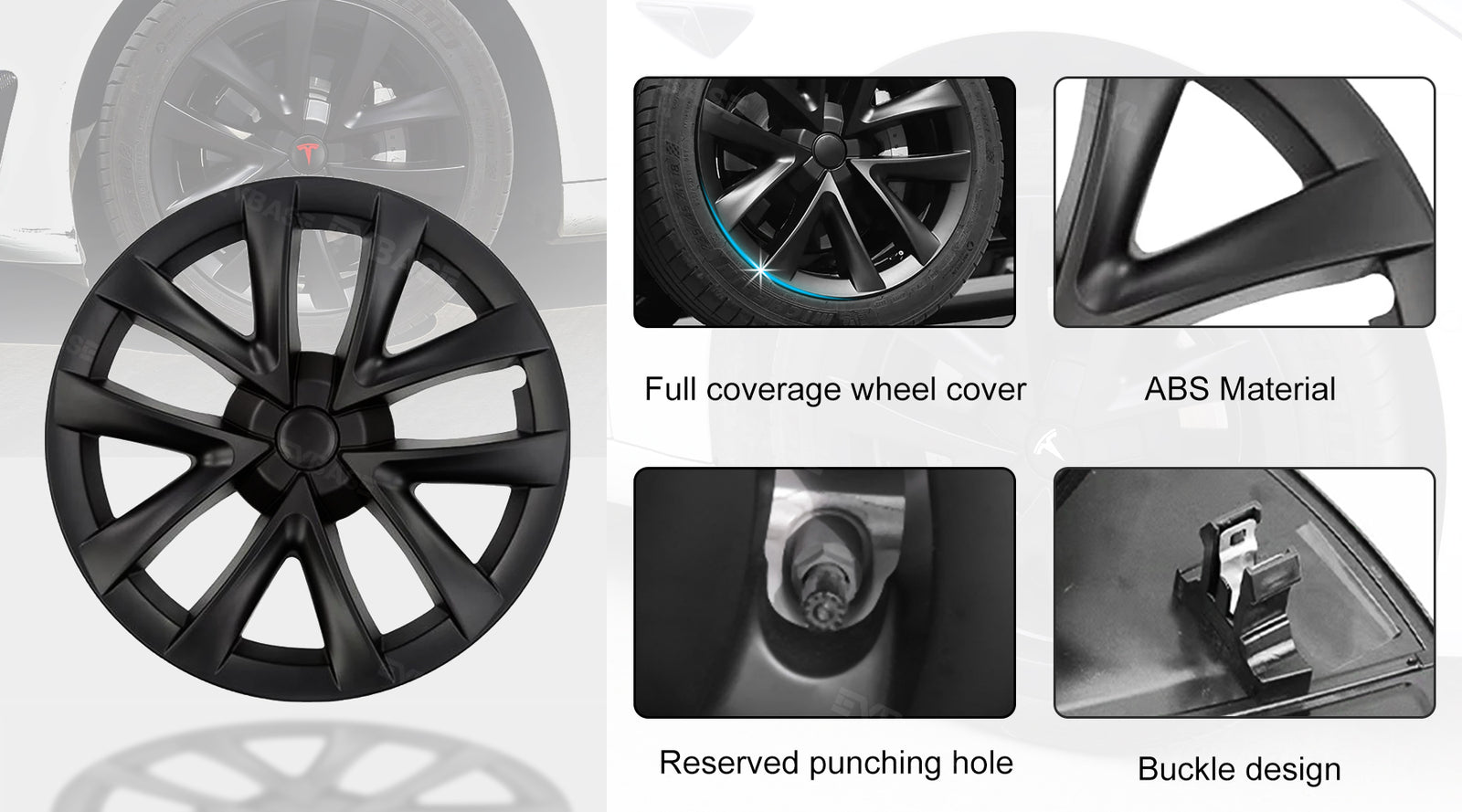 【Sporty Style】: Aggressive swoosh-shaped Tesla hubcap and cool.