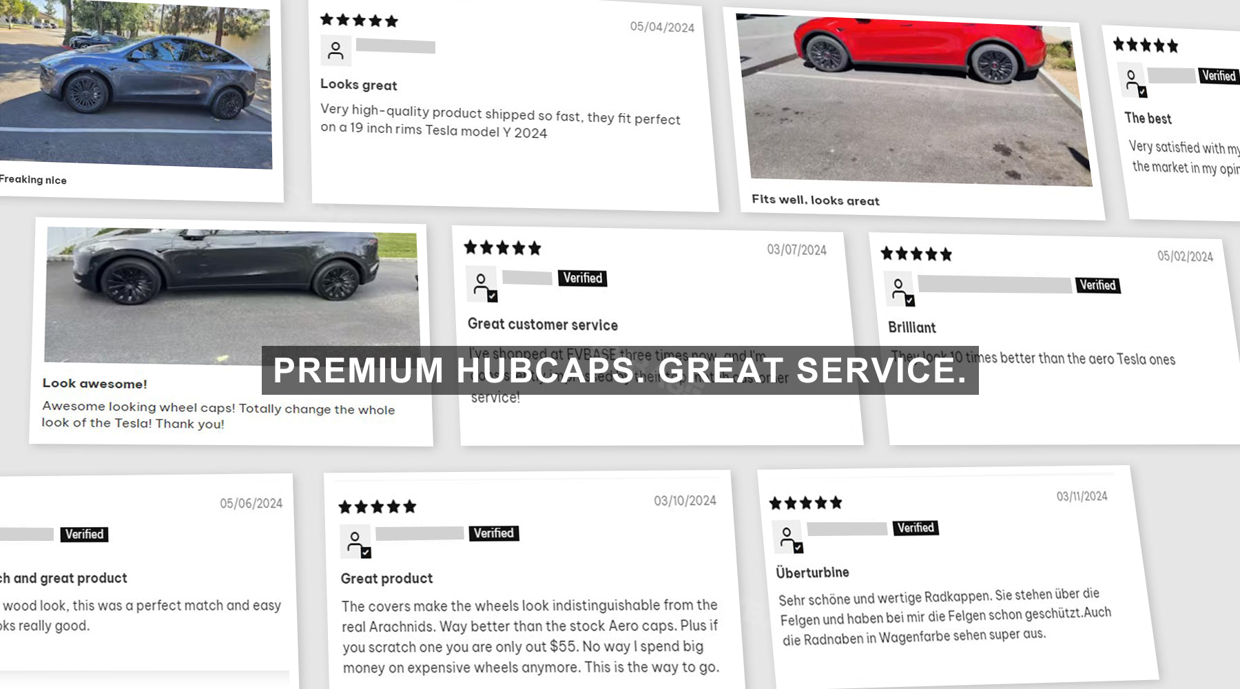 The hubcaps not only cover the whole alloy preventing rim rash, and protecting your rim from future curb rash, but also give your Tesla a performance look.