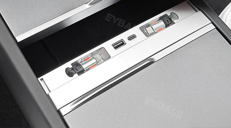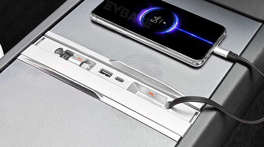 【Flexible Integration】EVBASE's USB HUB seamlessly fits your 2024+ Model 3 Highland, offering easy access to USB ports without console opening.