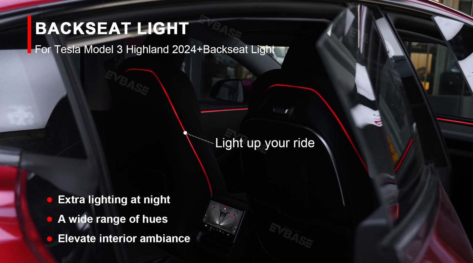 Tesla Model 3 Highland/ Y Juniper Backseat Ambient Lights Car Neon Light Interior EVBASE